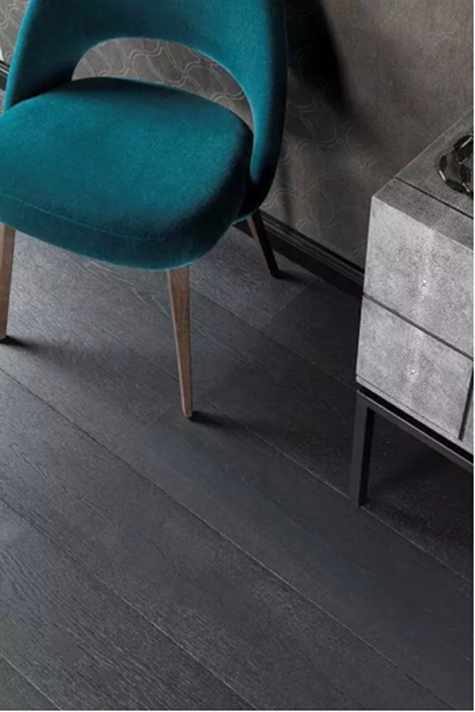 深色色彩已成為全球室內(nèi)設(shè)計(jì)的主流風(fēng)潮。BOEN新品Oak Ebony艾博尼櫟木,深色地板,給人以深邃高雅之感。藍(lán)色家具點(diǎn)睛裝飾,整個空間彰顯出迷人的高雅。