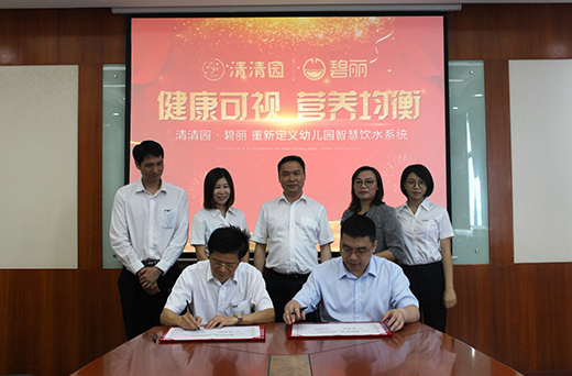 2019年7月13日上午,“健康可視,營養(yǎng)均衡,清清園·碧麗重新定義幼兒園飲水系統(tǒng)”的新品發(fā)布和市場運(yùn)營合作簽約儀式在廣東碧麗集團(tuán)總部隆重召開。華園控股董事長呂志榮博士、華園控股輪值CEO史龍博士、碧麗集團(tuán)董事長巫宗權(quán)先生及集團(tuán)高層領(lǐng)導(dǎo)出席簽約儀式。本次簽約儀式是對(duì)7月3日舉行的共同構(gòu)建“健康智慧幼兒園”戰(zhàn)略合作發(fā)布會(huì)工作的進(jìn)一步深化,清清園和碧麗聯(lián)手重新定義幼兒園飲水系統(tǒng),將開創(chuàng)校園智慧飲水新局面。
