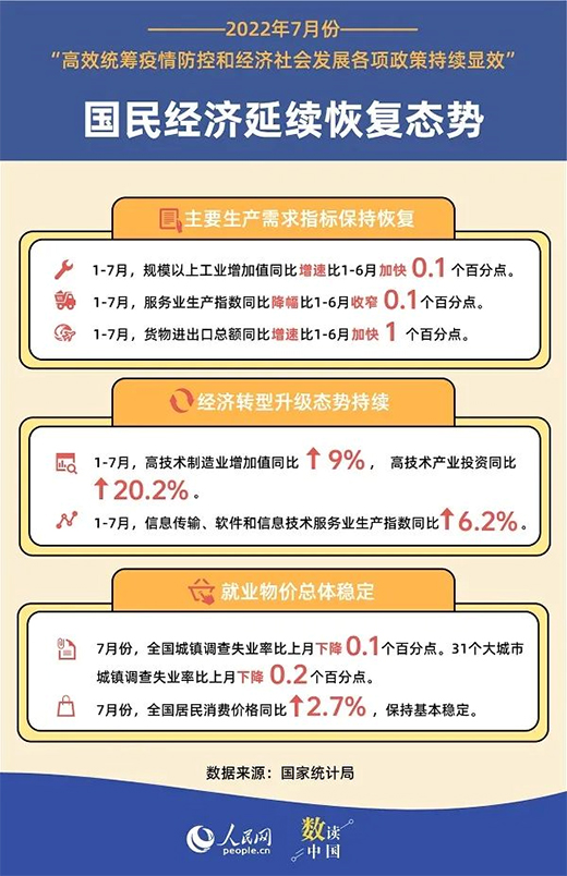7月份,隨著穩(wěn)經(jīng)濟一攬子政策進一步落實和顯效,我國經(jīng)濟繼續(xù)修復,主要指標基本穩(wěn)定。