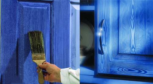 做帶色透明開(kāi)放式效果按正常噴漆容易出現(xiàn)針孔或透底現(xiàn)象,這主要由水性漆的特性決定的。顏色采用干噴的方法可以較好地解決顏色出現(xiàn)針孔和透底的問(wèn)題;然后罩面漆時(shí)可以采用正常的噴涂手法。
