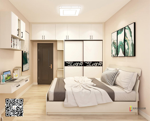 導師點評:整體空間合理規(guī)劃,展示有序的生活方式;衣柜富有現(xiàn)代氣息,整個臥室的色調搭配和諧,比較舒服。