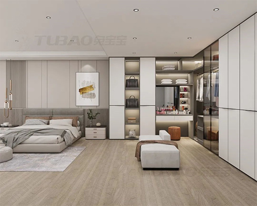 衣柜不夠用,總是塞得滿滿當(dāng)當(dāng),亂七八糟,就讓衣帽間來幫忙。另外,衣帽間還配置了梳妝臺,可以定制格抽,不用花大力氣收拾桌面,和堆滿一桌的情況說拜拜。