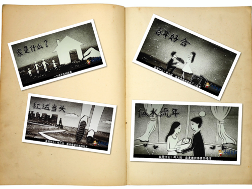 主持人帶領(lǐng)參會人員觀看新品推廣沙畫視頻(家是什么)