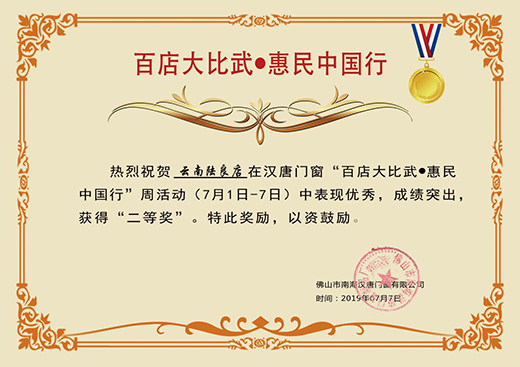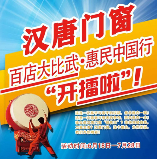 漢唐門窗“百店大比武·惠民中國行”活動第三周“冠亞季”名單正式公布,湖南衡陽專賣店勇奪周冠軍,云南陸良與廣東龍川專賣店分獲周亞軍和周季軍。