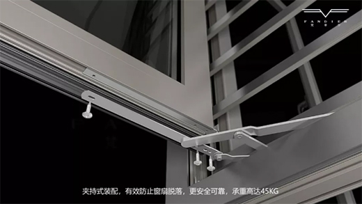為防止窗扇墜落,梵帝爾采用歐標(biāo)重型鉸鏈,鉸鏈為卡扣式連接,不會(huì)松脫,無(wú)需裝防墜繩,加上304不銹鋼材質(zhì),避免生銹斷裂。