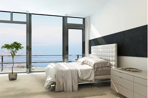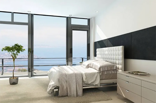 全落地窗的設(shè)計(jì),一定要做好防盜措施,然后注意防曬,注意寒冷的季節(jié),雖然很美,景色很好,但也要注意冷熱天氣!最好安裝具有隔音隔熱性能的鋁合金斷橋門(mén)窗,耐高溫,抗寒冷,防雨防風(fēng)。