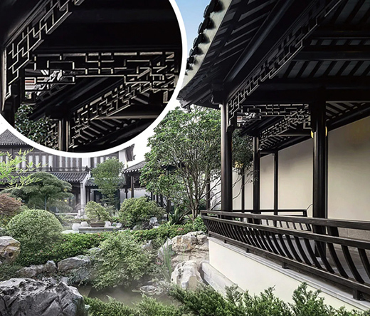 好運來用鋁材構(gòu)件代替?zhèn)鹘y(tǒng)木構(gòu),保留中式建筑的神韻美感,還降低維護成本,同時兼具防風(fēng)防雨、防腐防蛀等功能,更加經(jīng)久耐用、節(jié)能環(huán)保、實現(xiàn)定制。