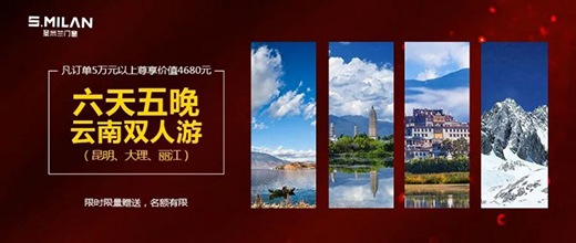 活動期間,到圣米蘭線下專賣店訂購滿額5萬元以上,可尊享價值4680元6天5晚云南雙人游(昆明、大理、麗江)。