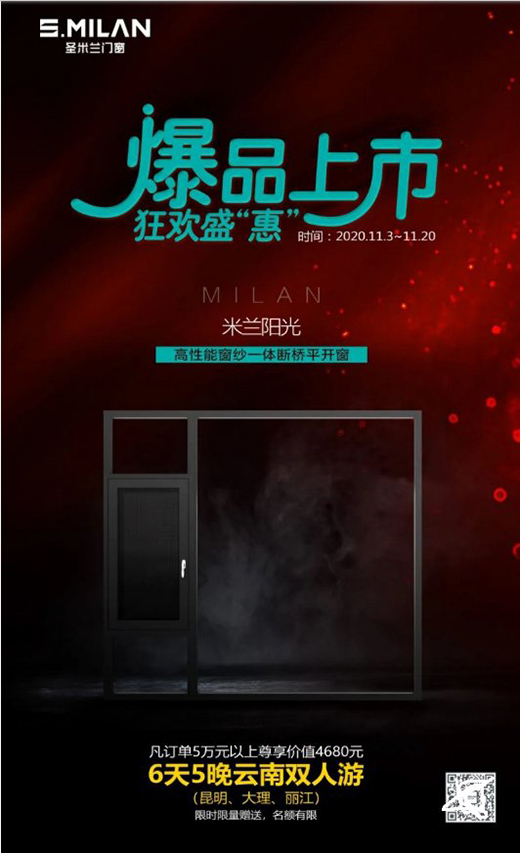 活動時間:2020年11月3日—11月20日,更多詳情請咨詢圣米蘭門窗全國專賣店。
