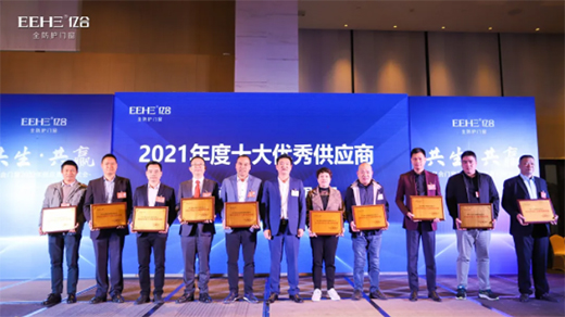 即將過去的2021年,在國際大宗商品價(jià)格持續(xù)暴漲的影響下,億合門窗仍舊憑借百折不饒的精神,以及優(yōu)質(zhì)的產(chǎn)品和服務(wù),向廣大用戶交上了一份漂亮的答卷。在這背后,離不開全體供應(yīng)商的配合和支持。此次會(huì)上,億合門窗為2021年度表現(xiàn)卓越的供應(yīng)商伙伴頒發(fā)了“2021年度十大供應(yīng)商”以及“2021年度優(yōu)秀供應(yīng)商”兩大獎(jiǎng)項(xiàng)。