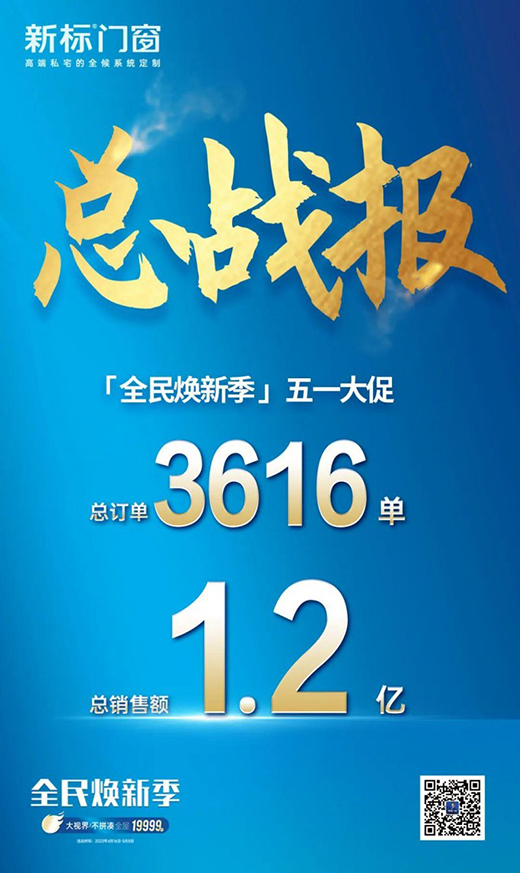 新標(biāo)門(mén)窗五一大促銷售額破1.2億元,圓滿收官!