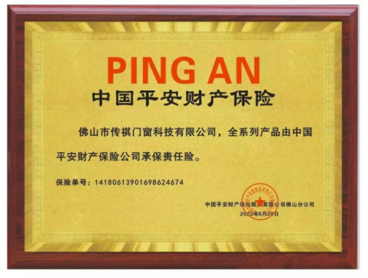 簽署合作前,投保單位及承保產(chǎn)品需要經(jīng)過(guò)中國(guó)平安保險(xiǎn)嚴(yán)格的質(zhì)量認(rèn)證檢驗(yàn)、地域檢驗(yàn)測(cè)試,并全面調(diào)研評(píng)估品牌的綜合實(shí)力、產(chǎn)品質(zhì)量、知名度及市場(chǎng)信譽(yù)度。傳祺門(mén)窗順利通過(guò)中國(guó)平安保險(xiǎn)審核,充分體現(xiàn)傳祺門(mén)窗品牌過(guò)硬的品質(zhì)與雄厚的實(shí)力。