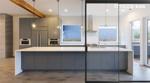 奧迪斯極窄推拉門采用時(shí)尚窄邊框設(shè)計(jì),流暢的線條設(shè)計(jì),不僅能增加美觀性,更開闊的視野感給人愉悅的享受。用于廚房阻隔,其良好的密封性能讓油煙不會(huì)飄散,也能阻隔烹飪雜音,一門多重功能兼?zhèn)?,是很多家庭廚房搭配的合適之選。