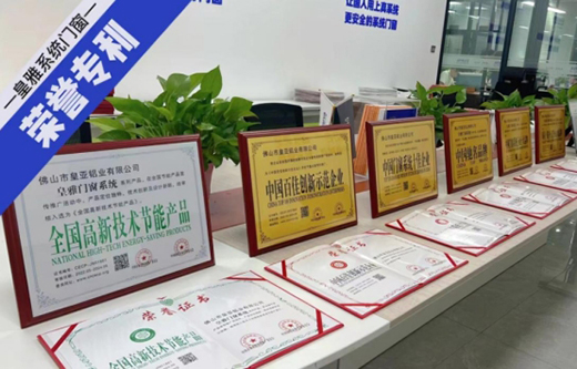 皇雅門窗系統(tǒng)榮獲多項(xiàng)榮譽(yù)證書:廣東省門窗協(xié)會(huì)副會(huì)長單位、中國十大門窗品牌、中國十大家裝門窗品牌、中國十大鋁合金門窗品牌、中國百佳創(chuàng)新示范企業(yè)、中國門窗系統(tǒng)行業(yè)十大品牌、中國門窗系統(tǒng)十佳企業(yè)、中國馳名品牌、全國高新技術(shù)節(jié)能產(chǎn)品、質(zhì)量·服務(wù)·信譽(yù)AAA級(jí)品牌。