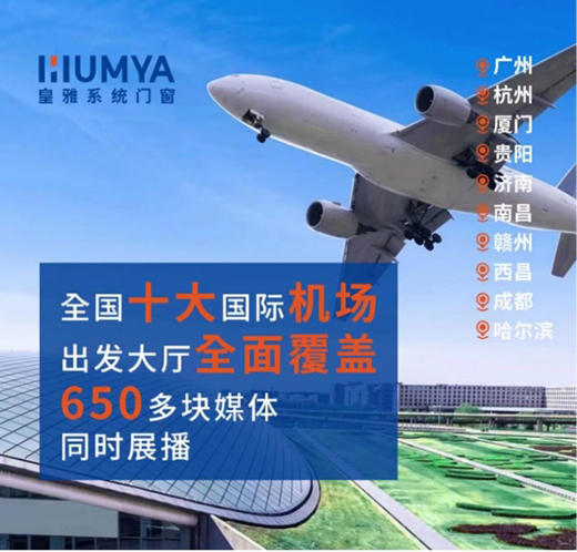 全國十大國際機(jī)場,出發(fā)大廳全面覆蓋,650多塊媒體同時(shí)展播,曝光數(shù)十萬余數(shù),立體式推廣面向中高端成功人群,有效投放。皇雅門窗系統(tǒng),是一個(gè)為消費(fèi)者呈現(xiàn)出十足的安全感的系統(tǒng)好門窗。