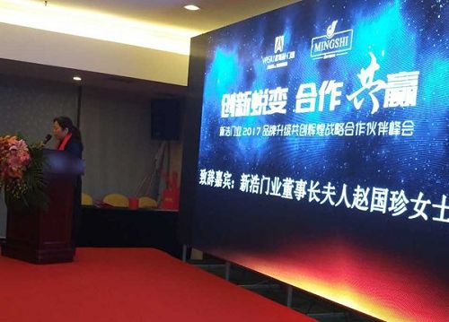 3月8日,銘師門(mén)窗就“創(chuàng)新蛻變 合作共贏”會(huì)議主題隆重舉行2017年戰(zhàn)略營(yíng)銷峰會(huì)。峰會(huì)上,銘師門(mén)窗董事長(zhǎng)夫人趙國(guó)珍女士致辭表示:感謝全國(guó)經(jīng)銷商們的大力支持,一直以來(lái),銘師門(mén)窗堅(jiān)持產(chǎn)品創(chuàng)新,堅(jiān)持給客戶最專業(yè)、最優(yōu)質(zhì)的服務(wù),形成了業(yè)內(nèi)無(wú)可復(fù)制的運(yùn)營(yíng)模式,我堅(jiān)信2017年我們專注品牌建設(shè),銘師定能再創(chuàng)佳績(jī)!