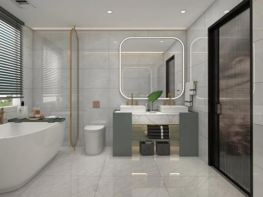 新卡洛灰清新的紋理令人放松寧?kù)o,最適合用在洗盡一身疲憊的浴室之中。