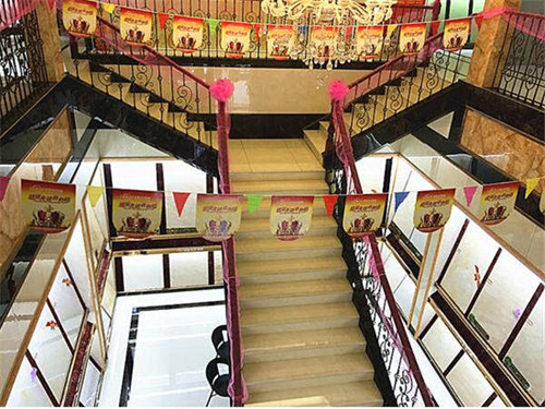 冠德卡瑪陶瓷臨沂旗艦店整體設(shè)計(jì)獨(dú)特,店內(nèi)采用中空設(shè)計(jì),不僅恢宏大氣,高端時(shí)尚,中央天花板的三層水晶吊燈使整體空間盡顯富麗堂皇,而中空設(shè)計(jì)與吊燈又巧妙地將兩層空間連接起來(lái),自然過(guò)渡,使選材區(qū)、樣版間、走廊互相呼應(yīng),相得益彰。