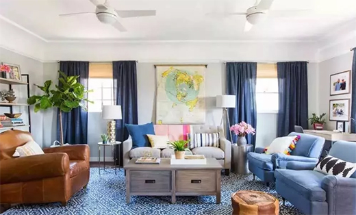 藏藍色它是高貴的,是貴族的象征,性感而成熟的色調(diào)賦予它深度的優(yōu)雅。藏藍色神秘而優(yōu)雅,在家居應用中,它從不挑剔空間,無論是別墅還是公寓,它都能完美駕馭。本期小編就給大家分享藏藍色窗簾在家居中的應用。