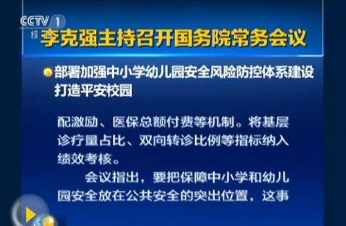4月12日,國務(wù)院召開常務(wù),會(huì)上李克強(qiáng)作為會(huì)議主持人提出要部署加強(qiáng)中小學(xué)幼兒園安全風(fēng)險(xiǎn)防控體系建設(shè),打造平安校園。把校園建設(shè)成最陽光、最安全的地方。