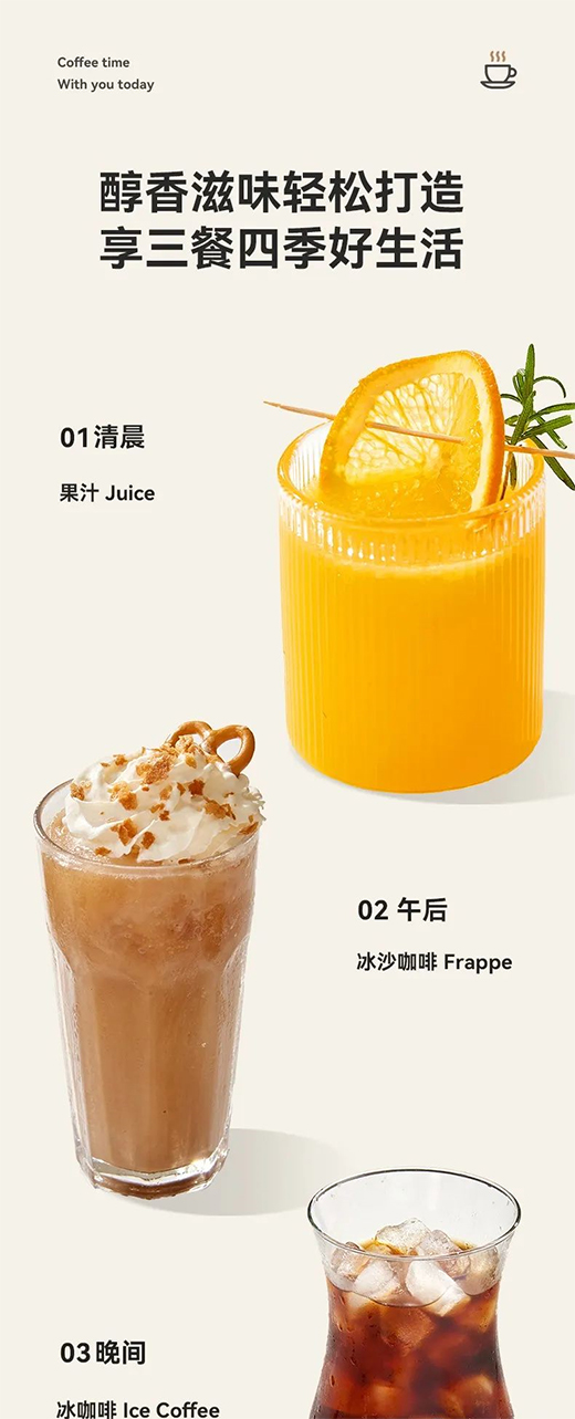 對于咖啡控來說,也相當(dāng)于為你量身打造了一個“家庭咖啡生活館”哦,讓你輕輕松松想喝就喝,一鍵滿足心儀口感。
