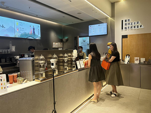 喜茶一家門(mén)店消費(fèi)者在取茶