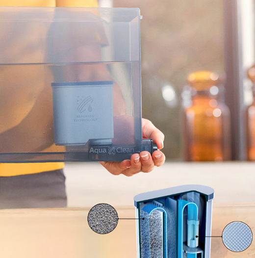 并且這款咖啡機還是采用了AquaClean強大濾水芯,能夠非常有效地過濾是用水的質(zhì)量,大大的增加了咖啡的口感,還提高了咖啡的質(zhì)量,而且它還能夠提醒你是否該更換濾芯,這樣可以很大程度地增加了咖啡機的壽命。