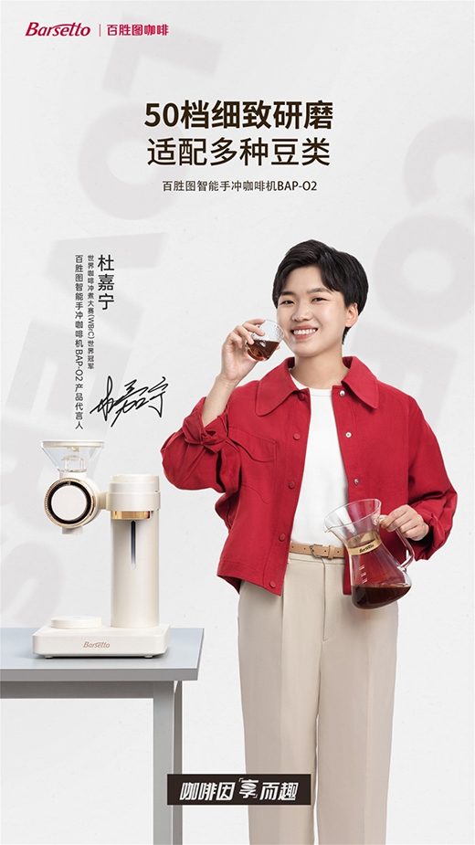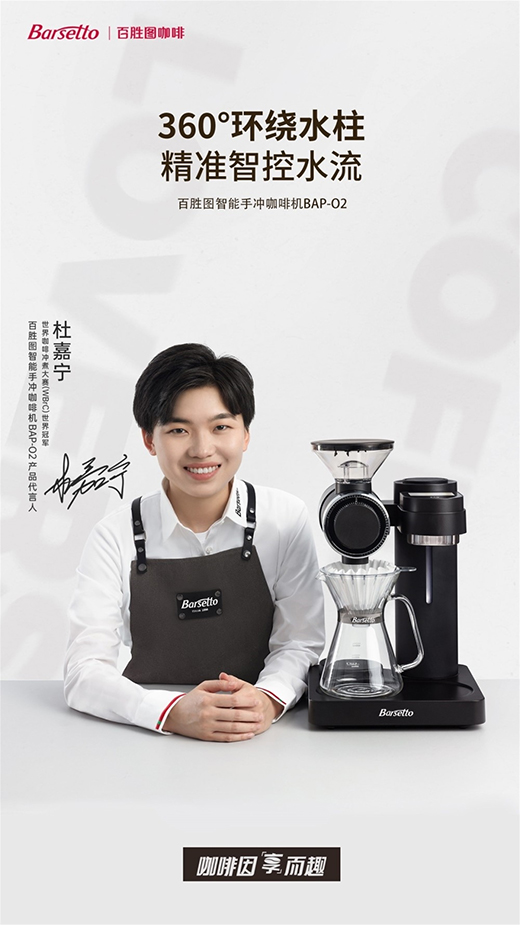 世界咖啡沖煮大賽冠軍杜嘉寧新代言的一款百勝圖Barsetto智能手沖咖啡機BAP-O2,就能讓熱愛手沖但被繁瑣流程困擾的小白們,輕松快捷地收獲一杯醇正手沖咖啡。一機多能,研磨與沖煮一體,50檔研磨檔位,充分滿足你的不同咖啡風(fēng)味需求。3條獨立水柱環(huán)繞澆水,還原經(jīng)典手沖技法,簡單操作,即可喝上精品手沖咖啡,享受精致美好的咖啡生活。