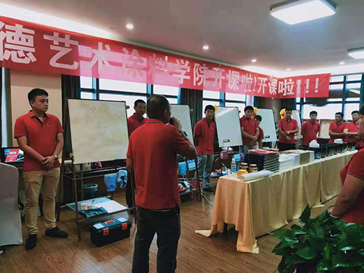 來自林德漆總部的藝術(shù)涂料培訓大師親自授課,就施工基材的處理、施工工具的選擇及施工手法的變換進行了詳細的講解。學員們認真聽講、全程投入,學習熱情空前高漲。