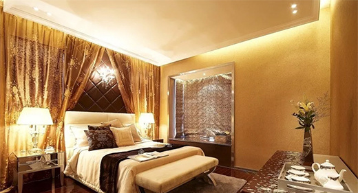 金色除了華麗的歐式風(fēng)格應(yīng)用比較多,其它風(fēng)格的裝修很少使用,金色代表燦爛、輝煌,有著太陽(yáng)般的光輝,象征著照亮黑暗的智慧之光,金色是一種很亮眼很難駕馭的顏色,搭配不好就容易變得庸俗,只有恰到好處的搭配才能讓金色大放光彩。