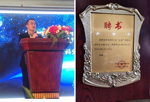 2019年,廣東省廣西商會(huì)涂料分會(huì)邀請(qǐng)了君匠世家藝術(shù)壁材總經(jīng)理李東明先生擔(dān)任秘書(shū)長(zhǎng)一職。在其后的一年內(nèi),李總參與籌劃商會(huì)各類(lèi)活動(dòng),攜手各成員團(tuán)結(jié)互助,共同應(yīng)對(duì)國(guó)內(nèi)涂料市場(chǎng)的變化挑戰(zhàn),關(guān)心和支持家鄉(xiāng)建設(shè),促進(jìn)涂料行業(yè)朝著健康良性的方向快速發(fā)展。