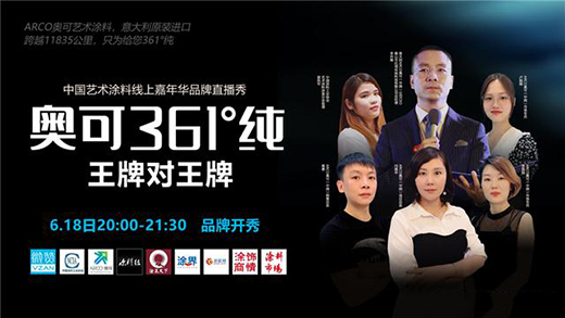 在6月9日剛剛落下帷幕的藝術(shù)涂料嘉年華啟動儀式上,高端藝術(shù)涂料品牌ARCO奧可驚艷亮相,這是ARCO奧可進入中國市場的第一次公眾展示。據(jù)了解,奧可ARCO還將于6月18日隆重開設(shè)“奧可直播專場”,這也是ARCO奧可進入中國市場以來的第一次直播首秀。值得一提的是,ARCO奧可直播秀主題為“王牌對王牌”,意思是ARCO奧可將與眾多品牌一起同臺競技,為藝術(shù)涂料的未來發(fā)展共同努力,共同進步。