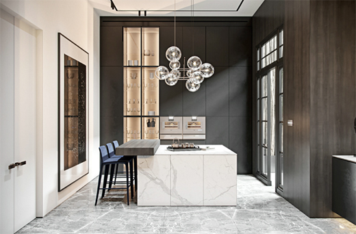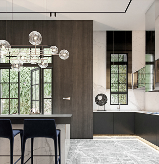 融入書房、工作室、健身房等區(qū)域。使得客廳的功能變得更加豐富多樣,客廳、餐廳、廚房一體化的布局模式。