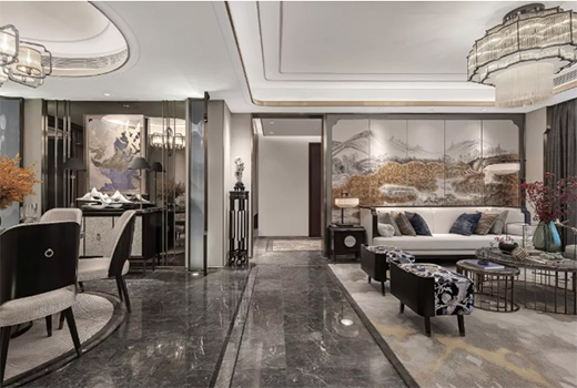 以新東方風(fēng)格設(shè)計,讓東方元素洗去時光的束縛,用簡明扼要的設(shè)計符號表達(dá)傳統(tǒng)文化的內(nèi)涵,通過傳統(tǒng)意象與現(xiàn)代材質(zhì)的對話碰撞營造出雅致愜意的空間氛圍。