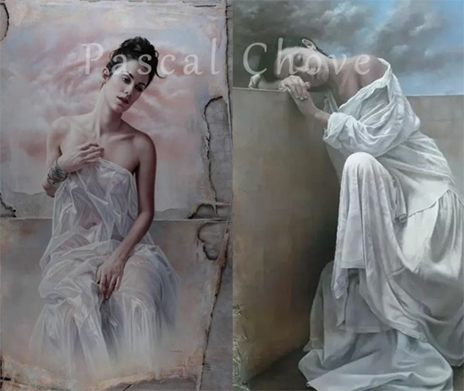 法國現(xiàn)代畫家Pascal Chove以白色為主題,描繪了人物的千姿百態(tài),游離在現(xiàn)實與夢幻,名《白色世界·真實的傳達》。