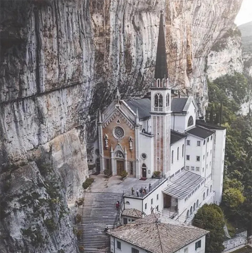 仿佛懸掛在空中的意大利教堂—Santuario Madonna della Corona,這座與高山峭壁融為一體的隱修外墻泛白,既夢幻浪漫又危險。