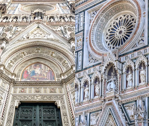 世界五大教堂之一—意大利圣母百花大教堂,被列入世界文化遺產(chǎn)。白紅綠是古典藝術(shù)與科學(xué)的結(jié)合,被大詩人徐志摩譯作“翡冷翠”。