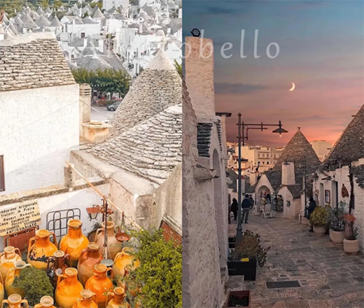 阿爾貝羅貝洛白色斗笠屋小鎮(zhèn),城內(nèi)的楚利建筑世界知名,1996年被聯(lián)合國教科文組織列為世界文化遺產(chǎn)。