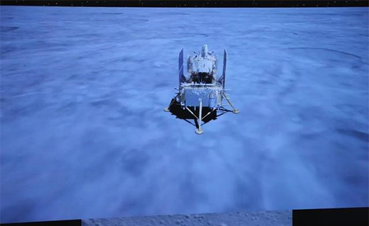 ↑12月1日拍攝的嫦娥五號探測器著陸畫面(新華社圖)