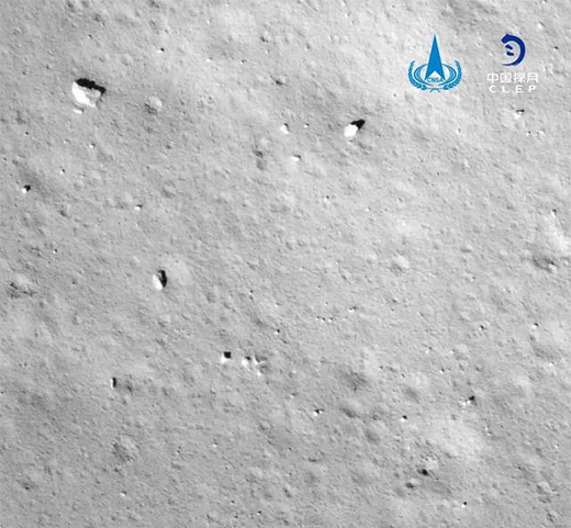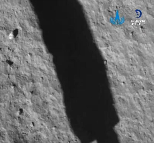 ↑嫦娥五號探測器軟著陸后降落相機拍攝的圖像