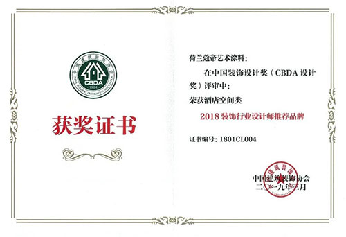 除此之外,荷蘭蔻帝還榮獲過“2018裝飾行業(yè)設(shè)計師推薦品牌”。
