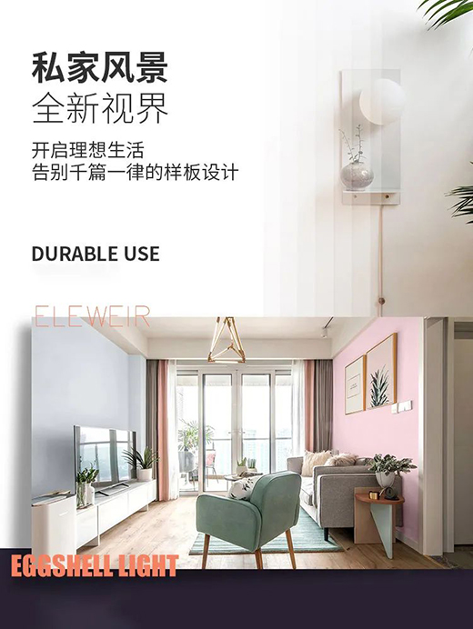 蛋殼光是一種環(huán)保藝術(shù)涂料,既不搶裝飾的風(fēng)頭,自身還帶高級(jí)感,觸感絲滑細(xì)膩,具有絲光般的光澤,能夠提升空間整體效果展現(xiàn),其色彩豐富齊全,給大家更多的創(chuàng)造家居色彩靈感。