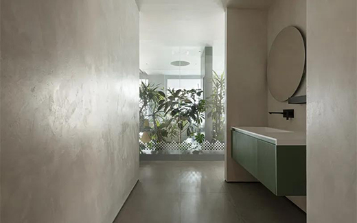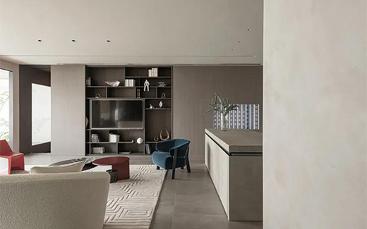 深色地板搭配深色墻面讓視覺感開闊,墻面是采用意大利TASSANI藝術(shù)涂料的Marmorino 和Enka系列產(chǎn)品,立體肌理質(zhì)感盡顯高級。藝術(shù)涂料擁有變幻無窮的裝飾效果和優(yōu)良的理化機能,眾多設(shè)計師和建筑師都為其癡迷,將其認為是打破常規(guī)重復(fù)現(xiàn)成裝飾的最佳選擇。