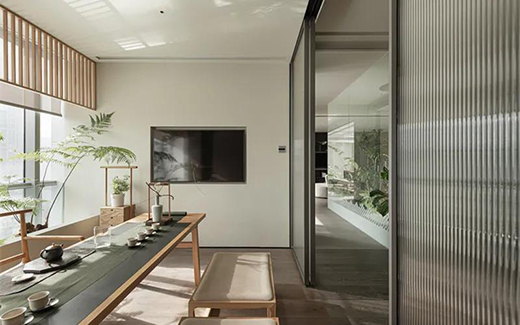 一個茶室是品質(zhì)生活的妙筆。淡雅的空間基調(diào),原木的色調(diào),流暢的簡約線條。一壺茶,兩三坐席,四五插花,整個茶室明亮、舒適,實現(xiàn)了茶道“和、敬、清、寂”之宗旨,同時也賦予了歸家從容安定的感受。