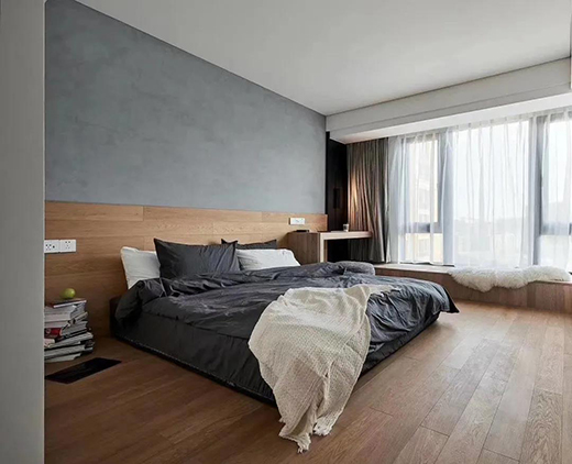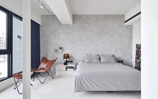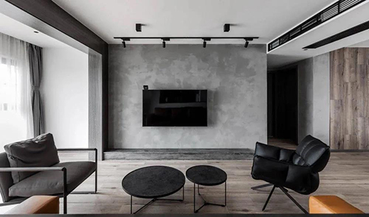 ▲清水混凝土 藝術涂料效果 電視背景墻保留了現(xiàn)代工業(yè)粗獷風格的水泥質感墻面,簡潔大方,也獨有格調。