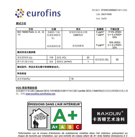 熱烈祝賀卡西頓藝術(shù)涂料榮獲法國A+認(rèn)證