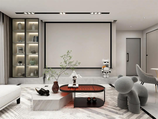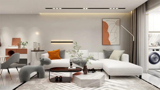 使用現(xiàn)代簡潔的線條表達出當代生活的高端品質(zhì)與態(tài)度,布質(zhì)沙發(fā)、大理石茶幾以及色調(diào)與家具完美契合的質(zhì)感地毯,均以絕佳的材質(zhì),展現(xiàn)出對精致生活的追求。