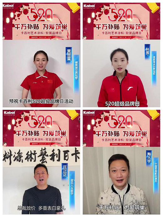 據(jù)官方透露,接下來(lái)將有更多大牌獻(xiàn)禮卡百利520超級(jí)品牌日 ,更有超級(jí)明星充當(dāng)卡百利藝術(shù)涂料“好物推薦官”,敬請(qǐng)關(guān)注!