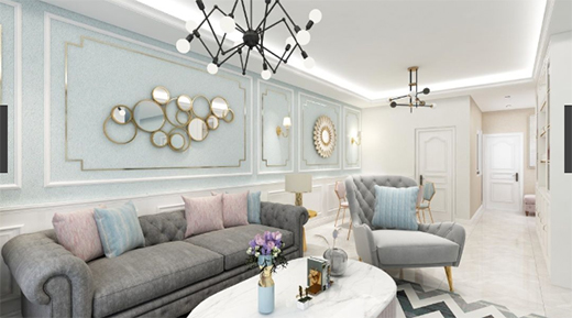 軟裝的線條增強了空間的層次感,配搭藝術(shù)涂料貝殼彩片系列,成就空間之美。