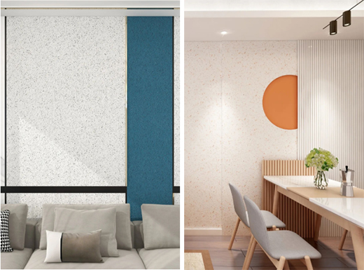 藝術(shù)涂料打破了乳膠漆的平質(zhì)單色,可根據(jù)不同人群的個性化需求,通過符合色彩和立體質(zhì)感,創(chuàng)造出風格各異、效果多樣、質(zhì)感逼真的紋理,運用于不同場景及風格中都是一道亮麗的風景。